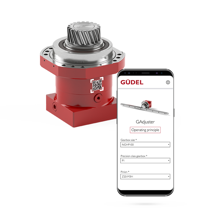 Der GAdjuster unterstützt Sie mit einem geführten Prozess zur Einstellung des Zahneingriffs zwischen Zahnstange und Ritzel. Mehr als 20 Jahre Erfahrung  inder Antriebstechnik erlauben es uns, Ihnen eine Einstellungsempfehlung basierend auf Ihrer Konfiguration zugeben. Scannen Sie den QR-Code auf dem Getriebe und stellen Sie die empfohlenen Werte ein, indem Sie Schritt für Schritt der leicht verständli-chen Webanwendung folgen.