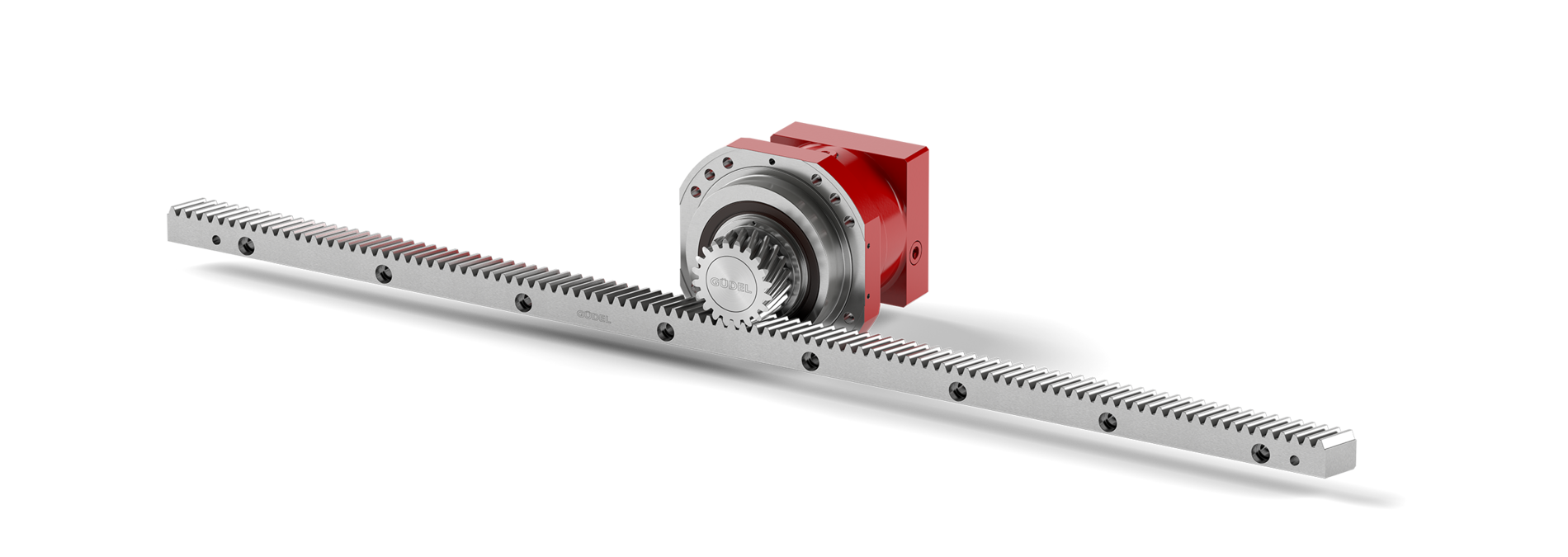 Planetengetriebe und Abtriebsritzel bilden zusammen mit dem Befestigungs- und Messsystem ein Bauteil