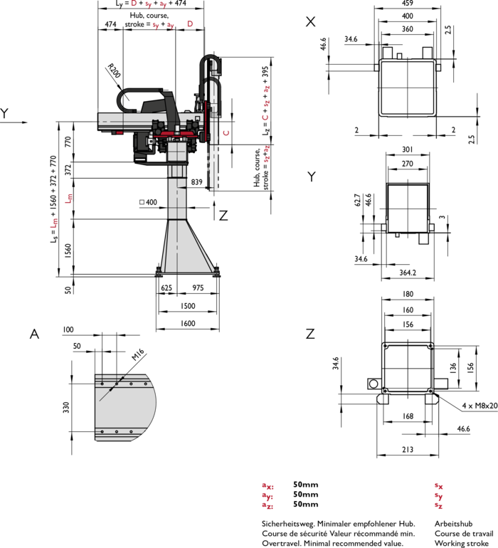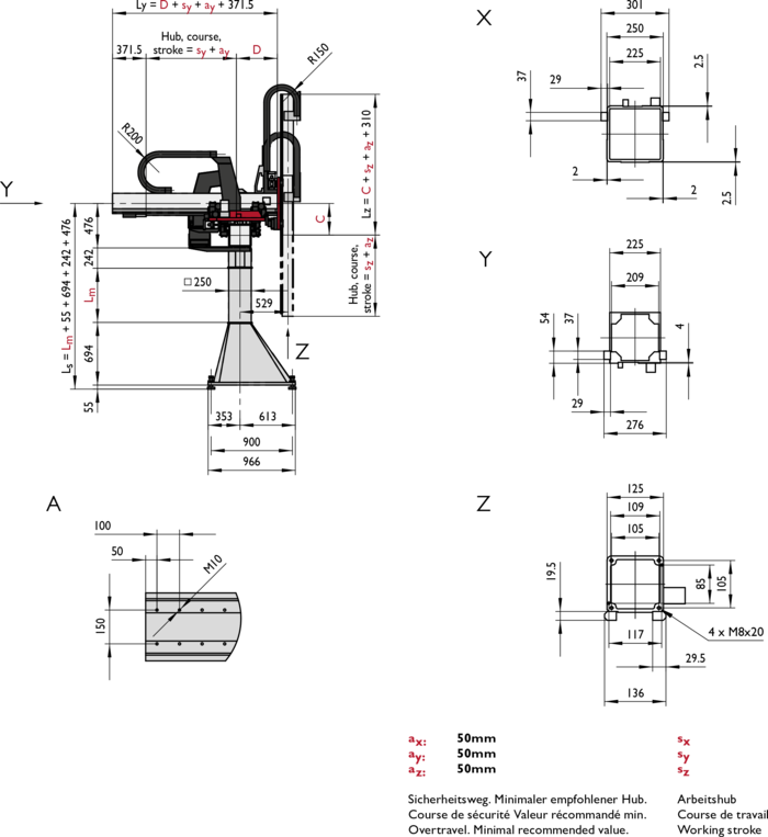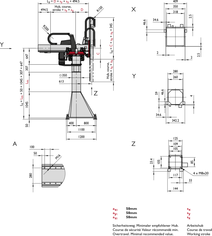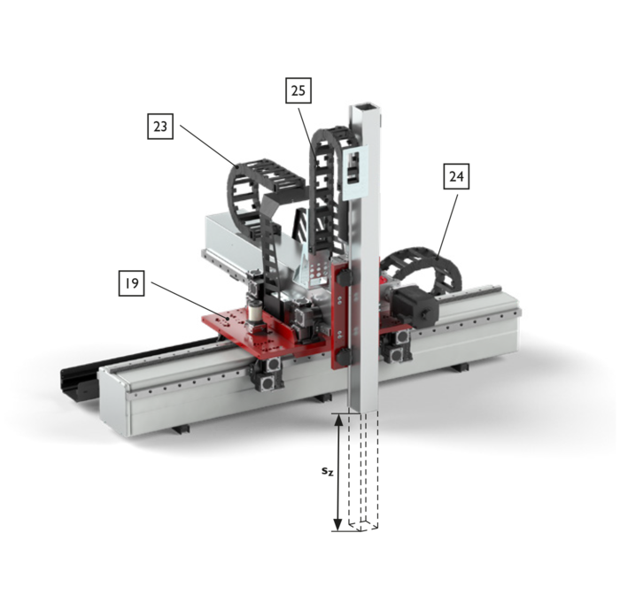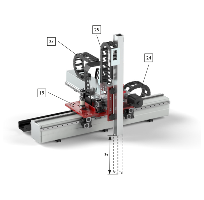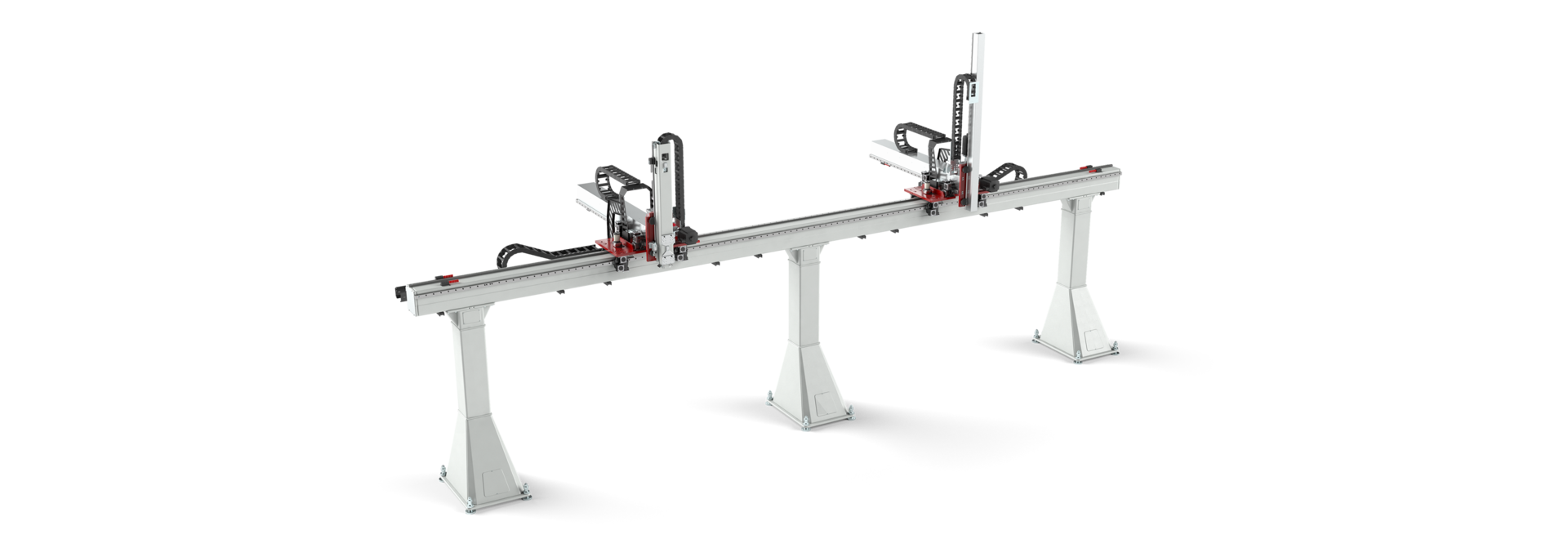 Mit unserem CP können gewünschte Positionen von oben angefahren werden, zudem ermöglicht die Auslergerachse das Verfahren im Raum. Es ist sehr platzsparend, weil es auf eine zweite Stützachse verzichten kann. Daraus resultieren einzigartige Vorteile in der Anlagenplanung.