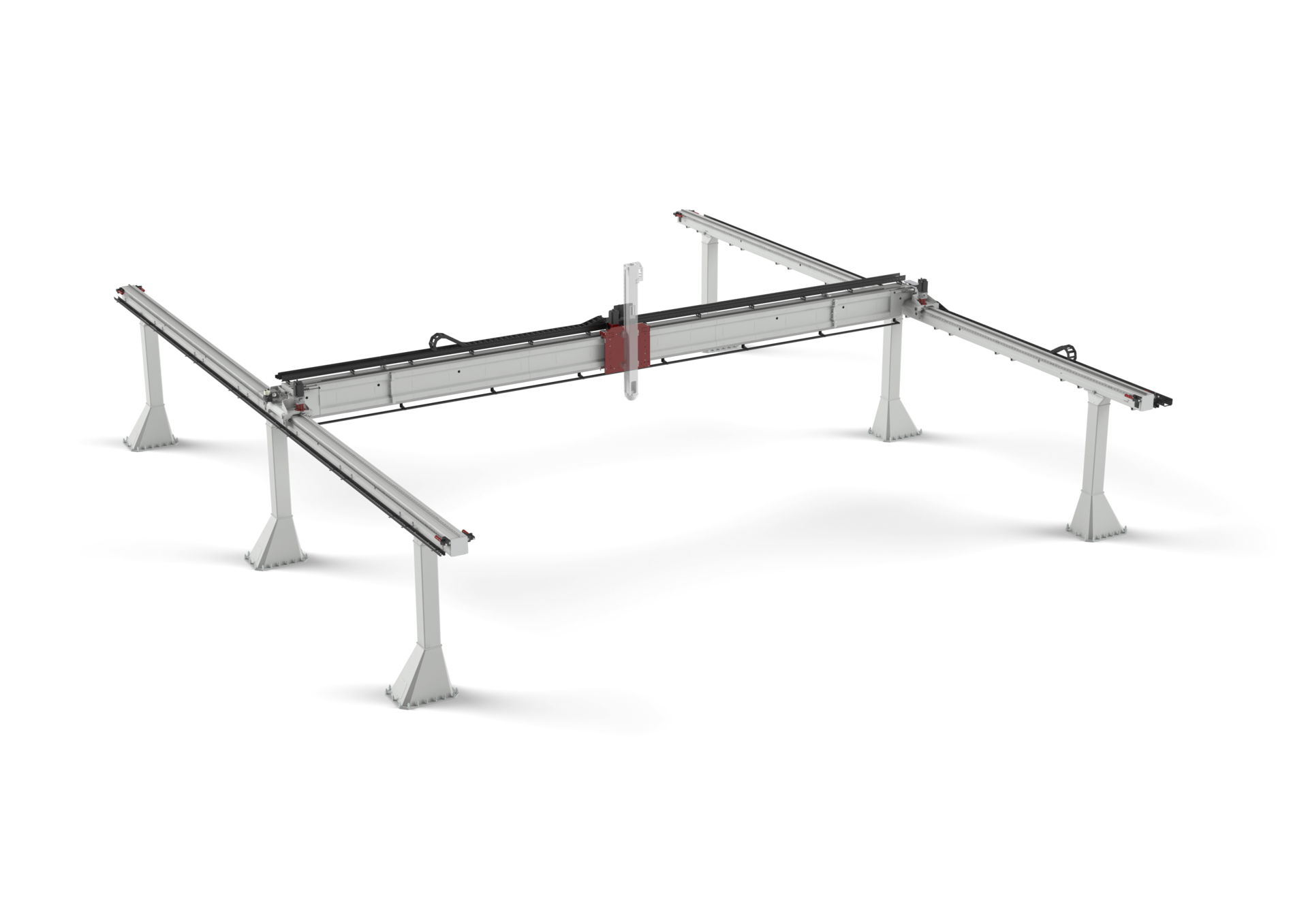 Mit dem neuen Hochleistungsportal ist nun ein maximaler Hub von 14 m für die Y-Achse möglich. Die hohe Dynamik des neuen Portals trägt durch die Beschleunigung des Prozesses zu einer Verbesserung der Gesamtzykluszeit der Anlage bei. Das Flächenportal FP-5-HP eignet sich besonders für Anwendungen, bei denen grosse Arbeitsbereiche mit höchstmöglicher Dynamik abgedeckt werden müssen. Auf dem Y-Laufwagen kann eine Last bis 1100 kg montiert werden, während im Falle des Portals mit Z-Achse eine effektive hochdynamische Nutzlast bis 500 kg möglich ist.